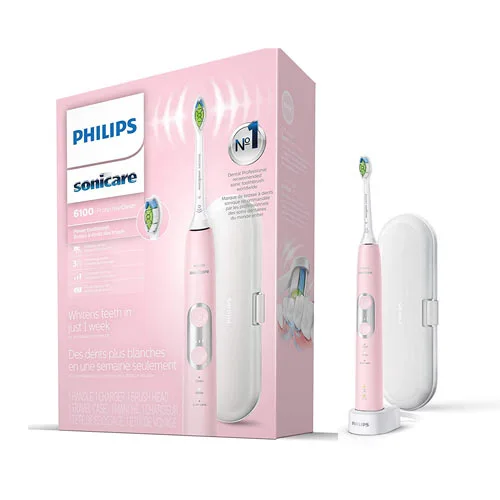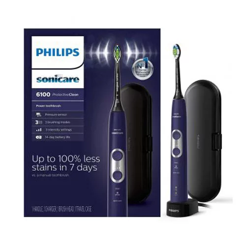 Bàn chải điện Philips Sonicare 6100 HX6877 là một trong những mẫu bàn chải điện bán chạy nhất của Philips. Với mức giá vô cùng dễ chịu và đi kèm hàng loạt tính năng khác nhau chắc chắn sẽ khiến bạn hài lòng. Ngoài ra, với công nghệ Sonic độc quyền của hãng hứa hẹn sẽ đánh bay mọi mảng bám ở kẽ răng cũng như mang lại cho bạn hàm răng trắng sáng. Làm sạch răng gấp 7 lần so với dùng bàn chải đánh răng thông thường.